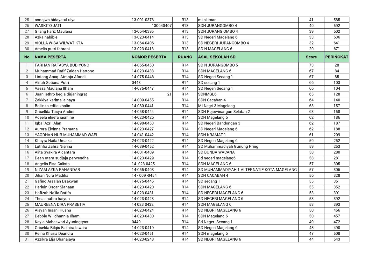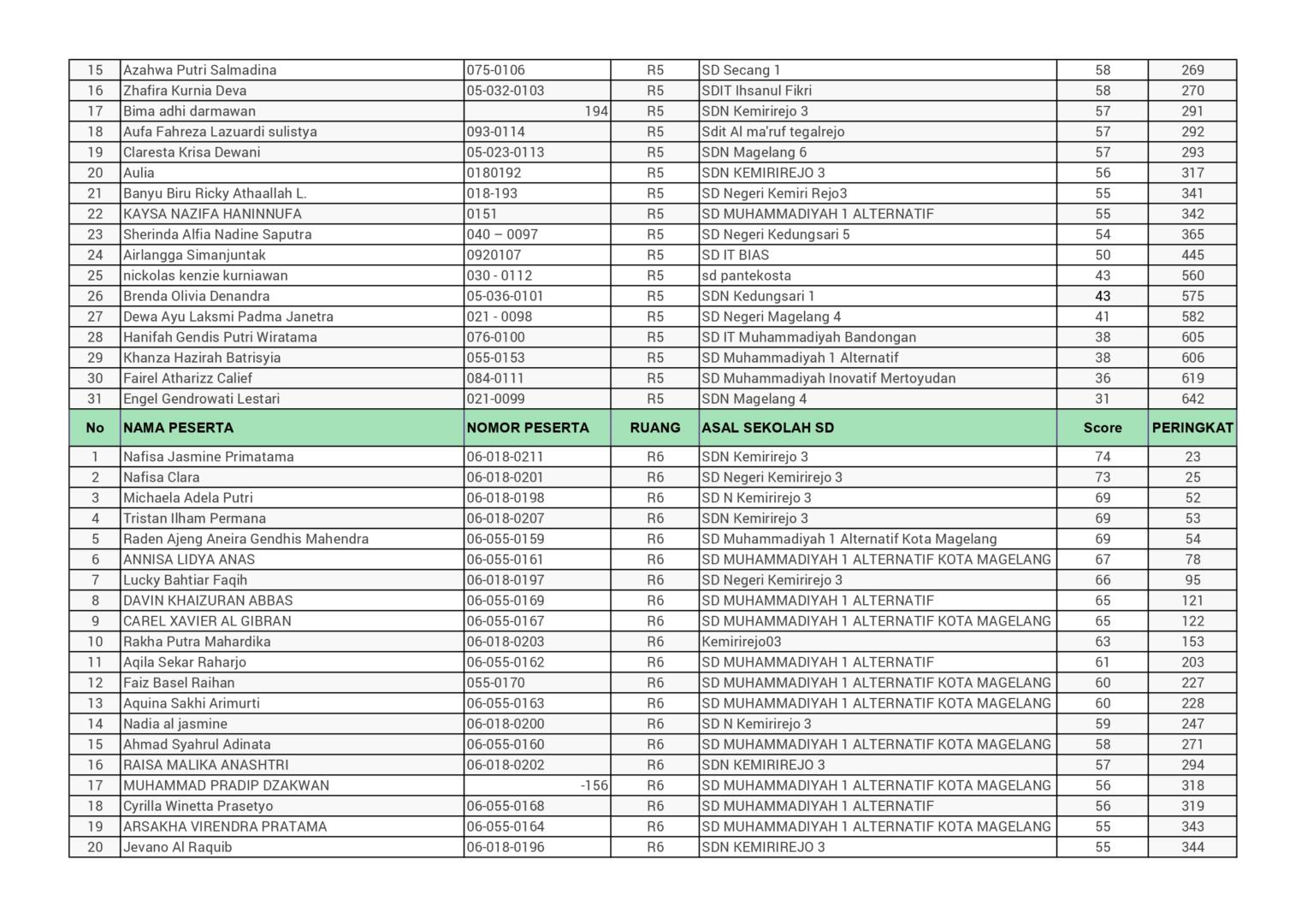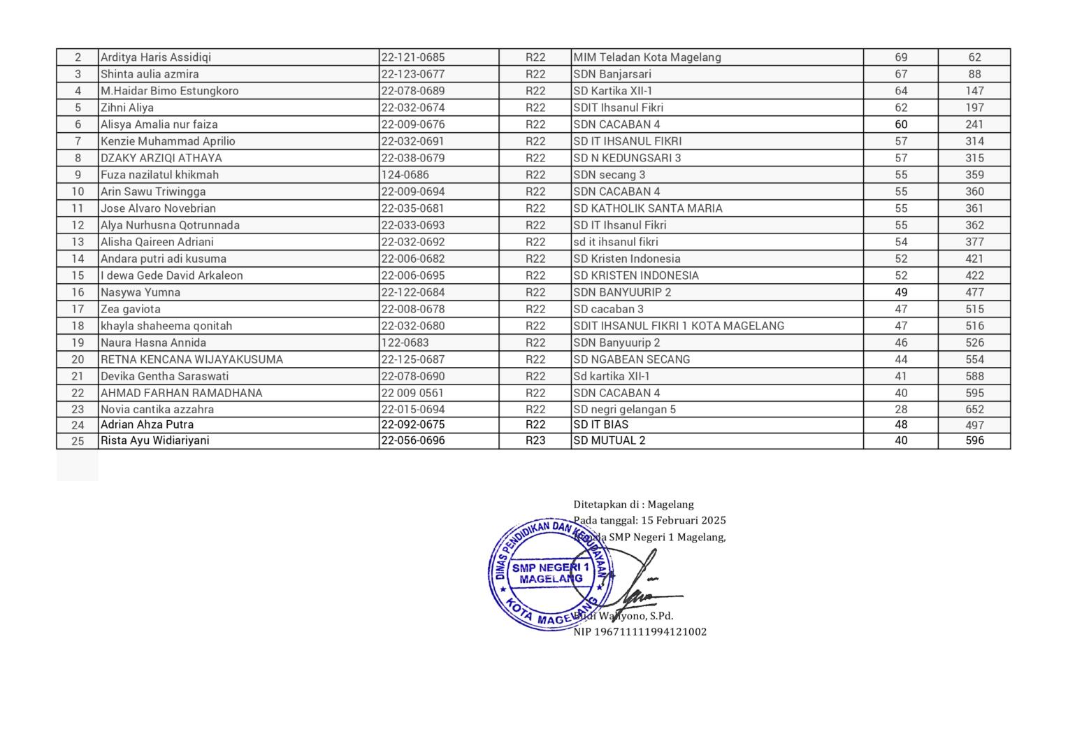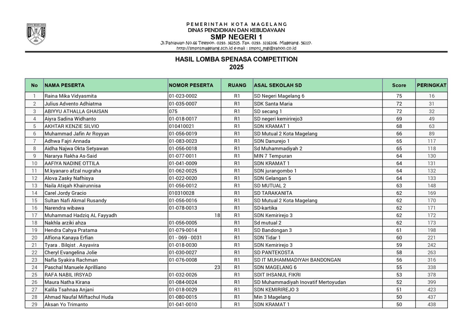 HASIL SPENASA COMPETITION SMP NEGERI 1 MAGELANG TAHUN 2025