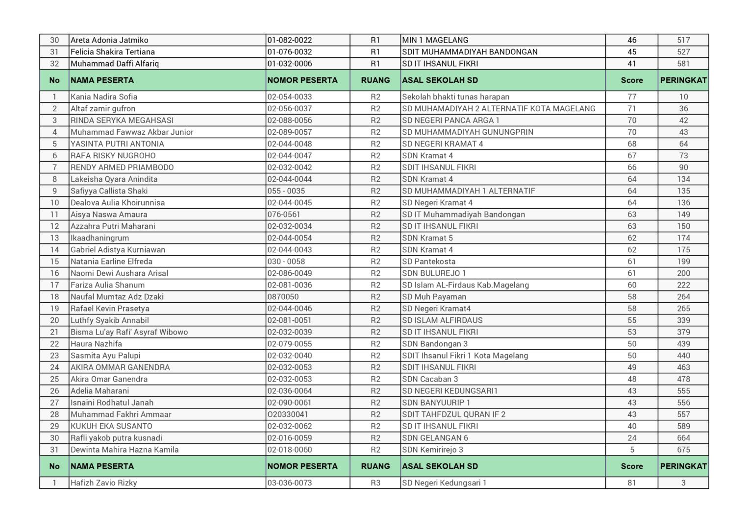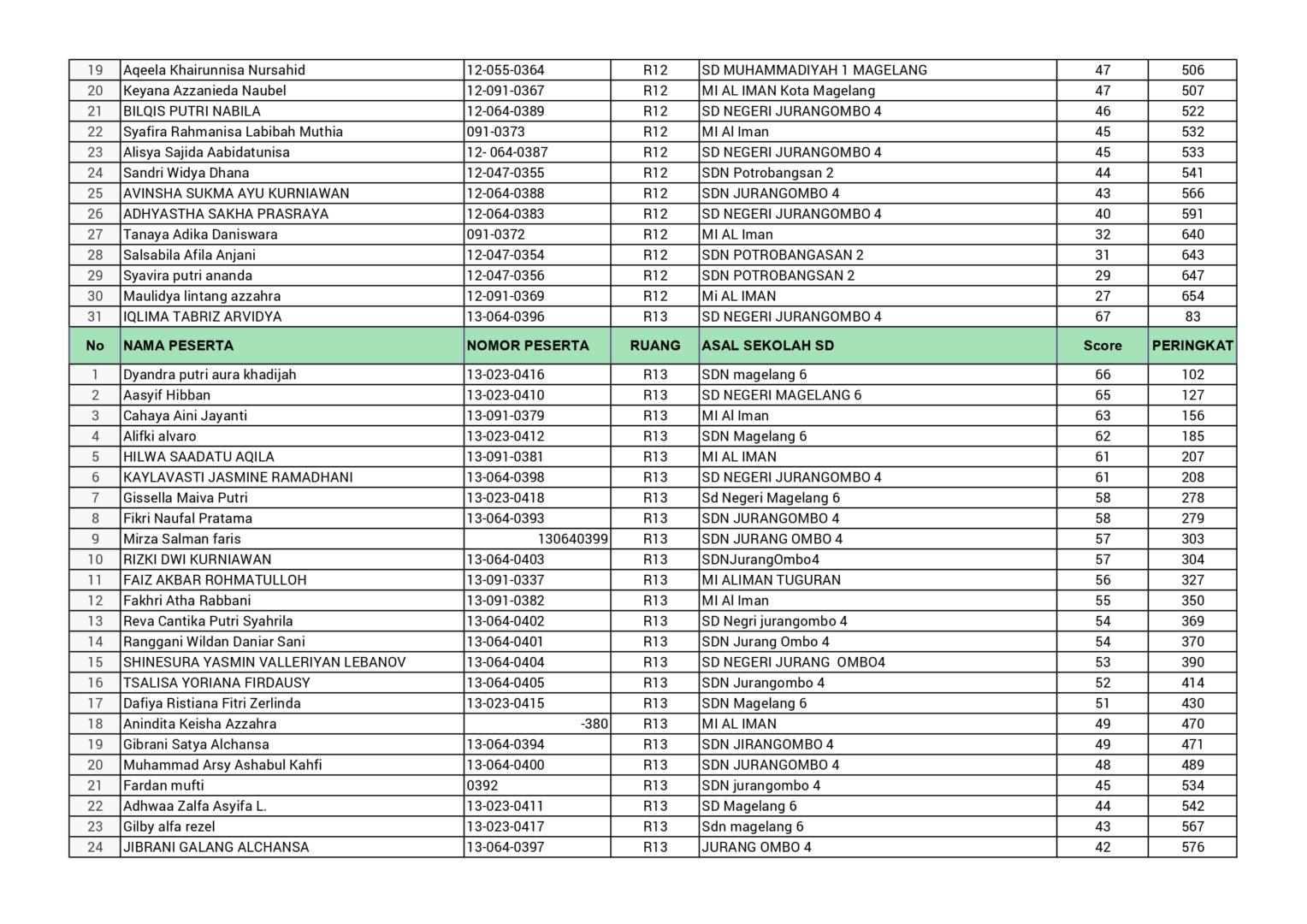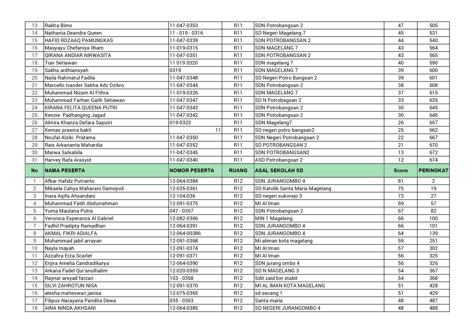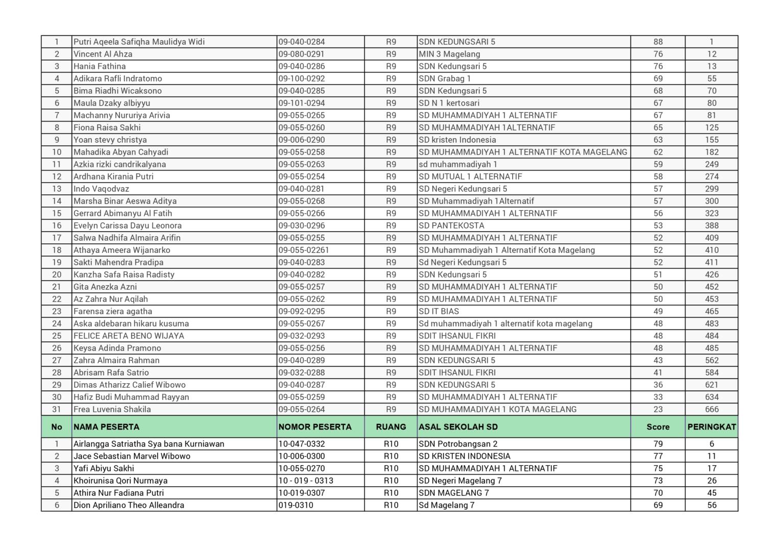 HASIL SPENASA COMPETITION SMP NEGERI 1 MAGELANG TAHUN 2025