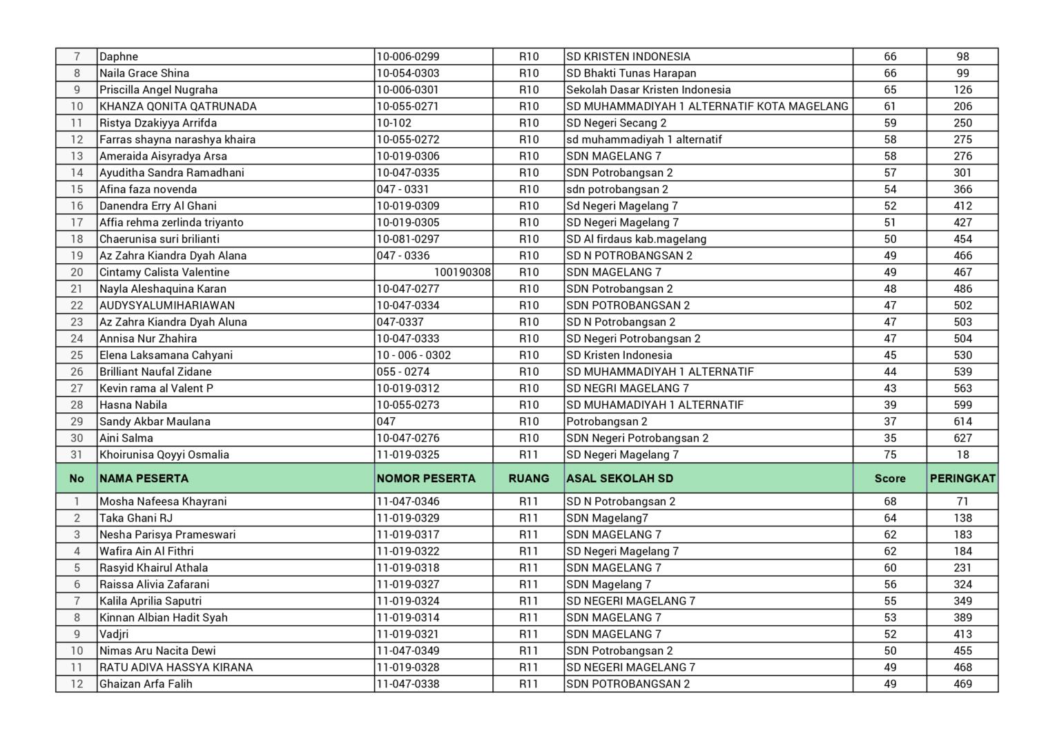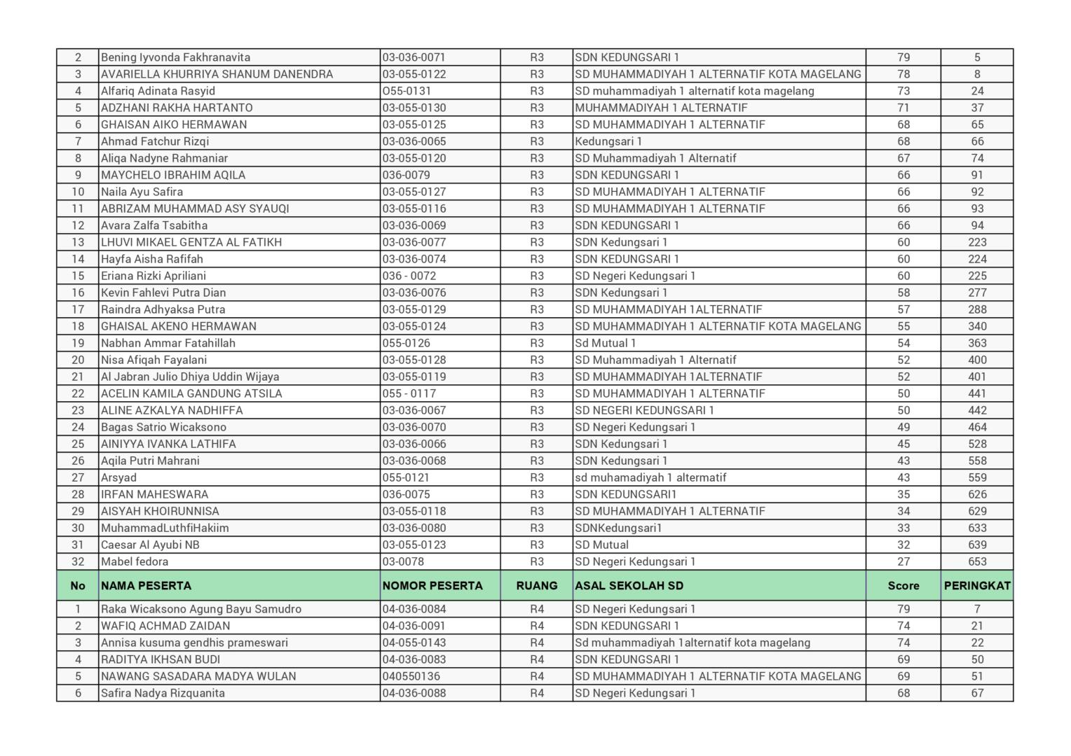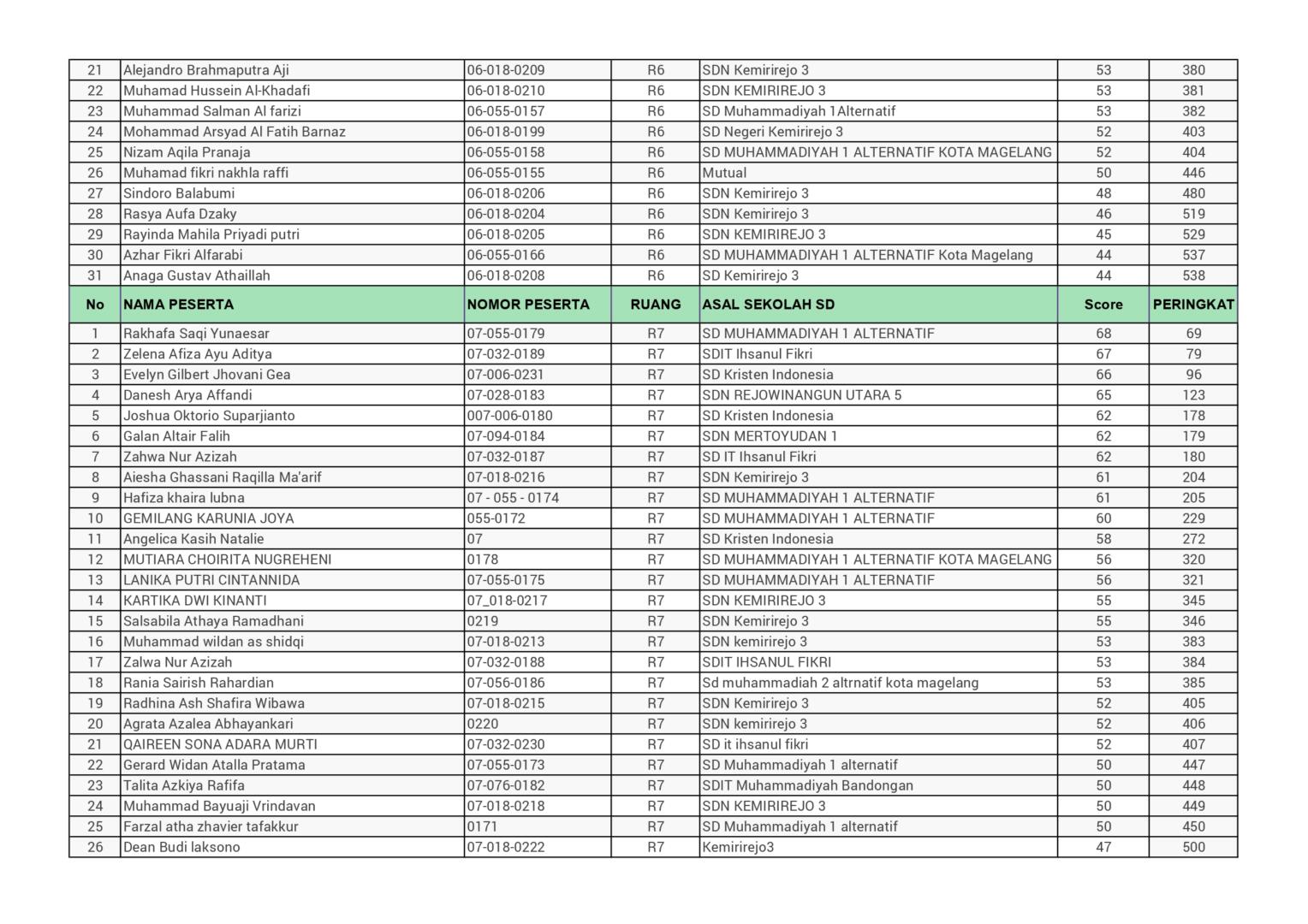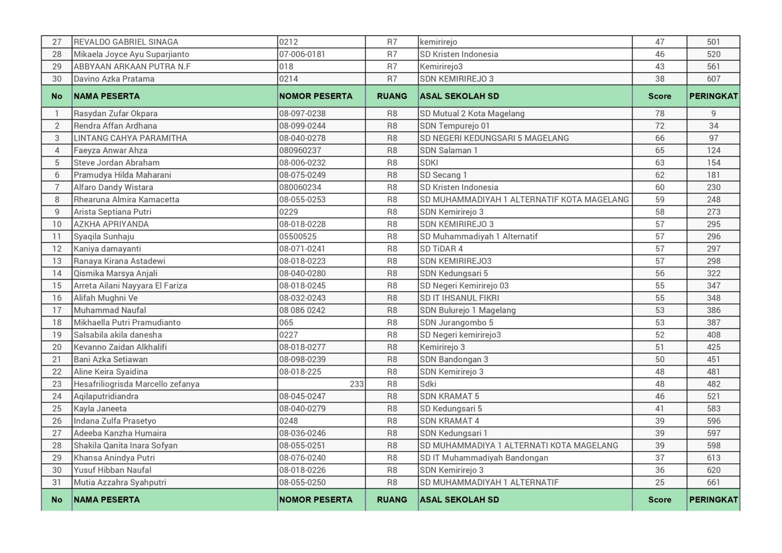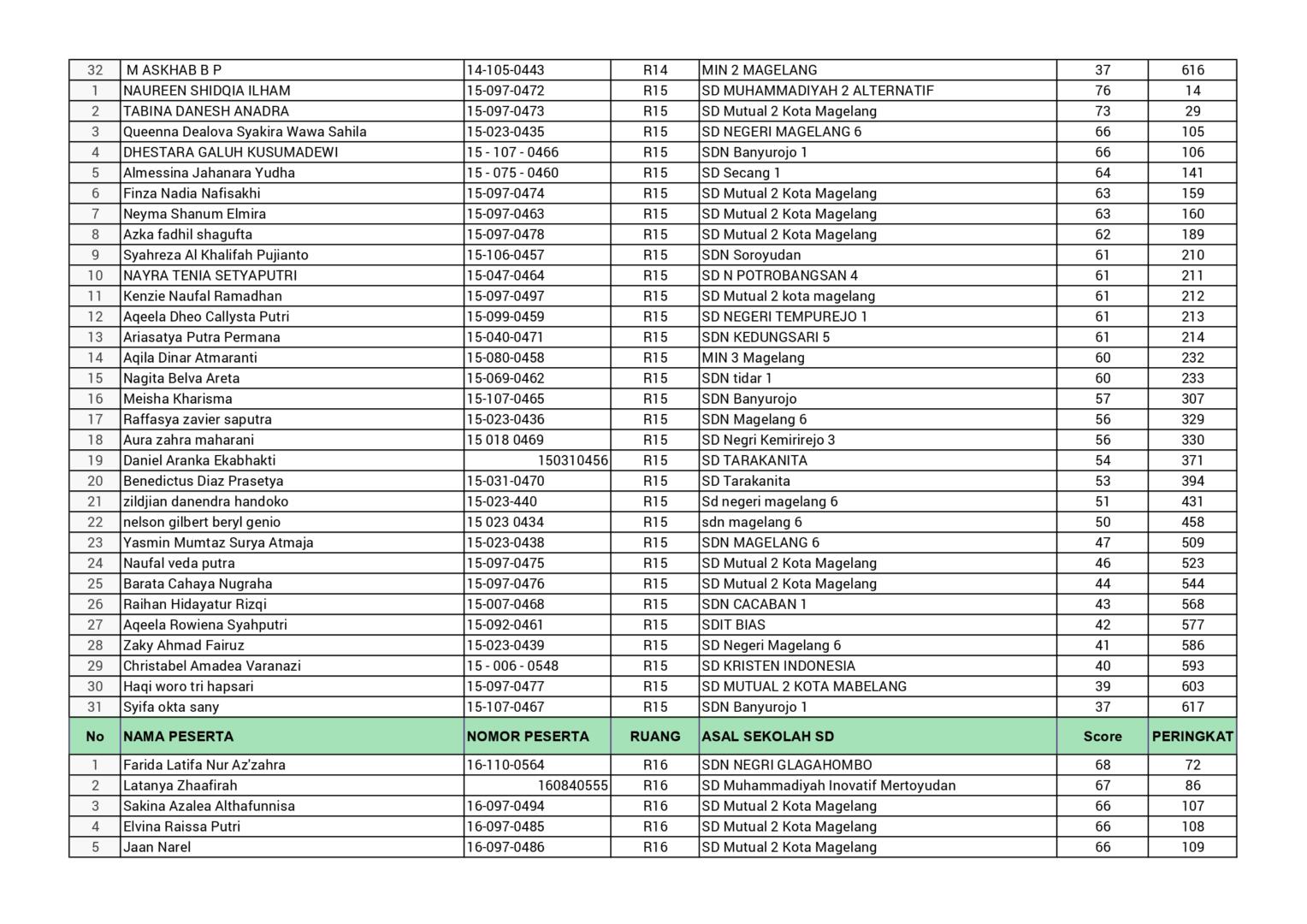 HASIL SPENASA COMPETITION SMP NEGERI 1 MAGELANG TAHUN 2025