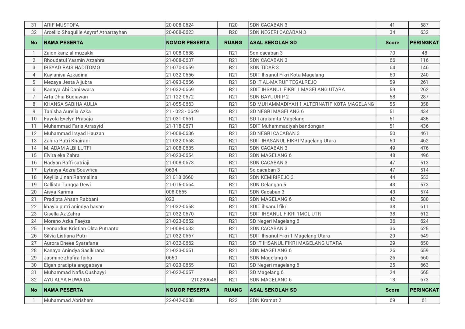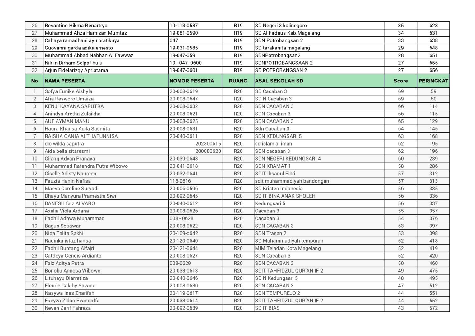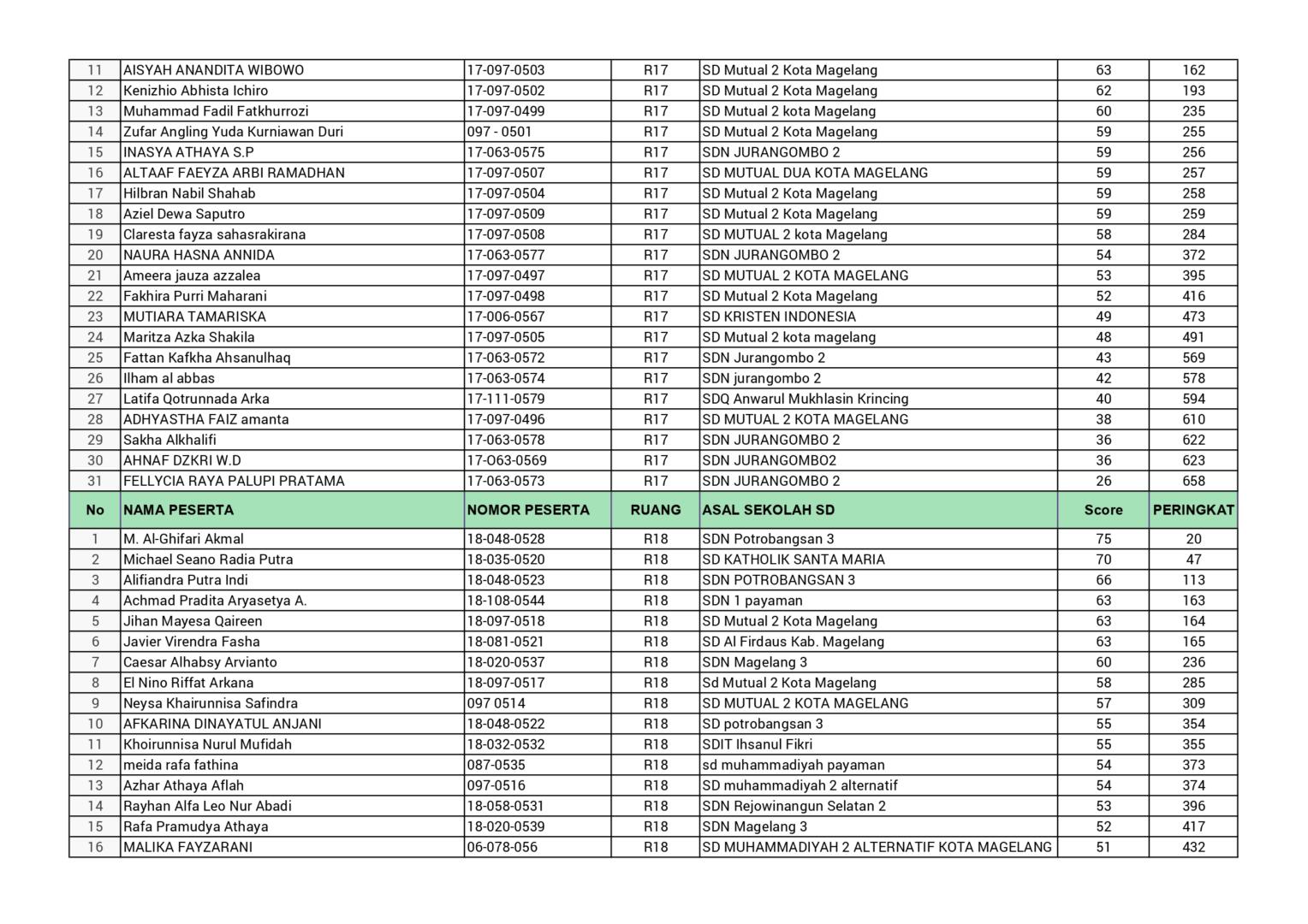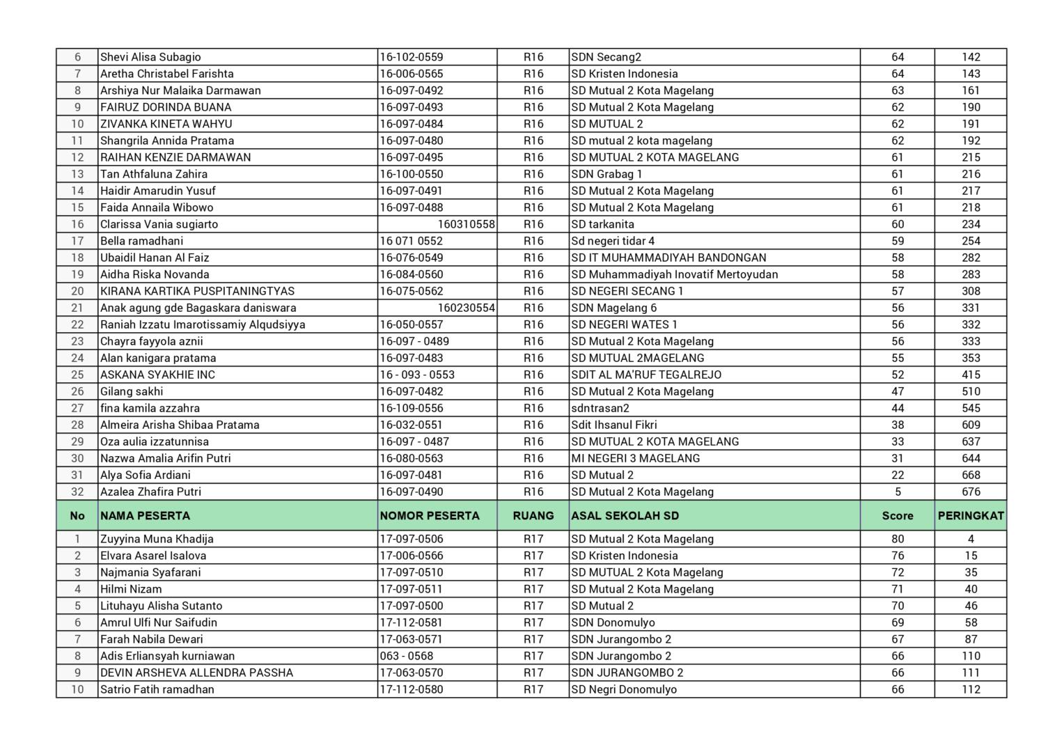 HASIL SPENASA COMPETITION SMP NEGERI 1 MAGELANG TAHUN 2025