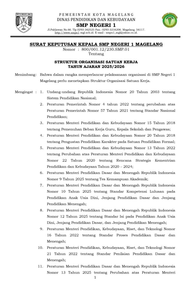 Survey Kepuasan Masyarakat (SKM) SMP Negeri 1 Magelang