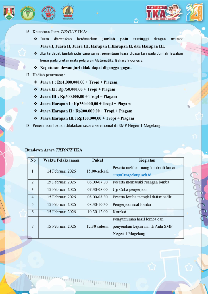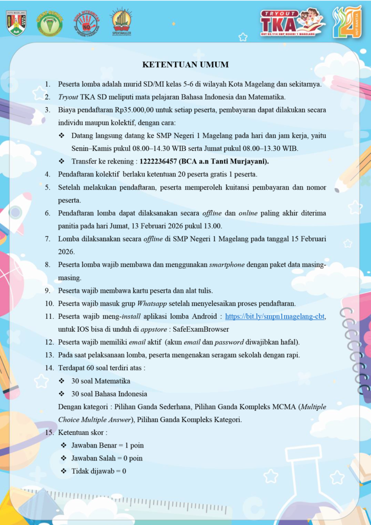TRYOUT TKA SD/Mi HUT KE-114 SMP NEGERI 1 MAGELANG TAHUN 2026
